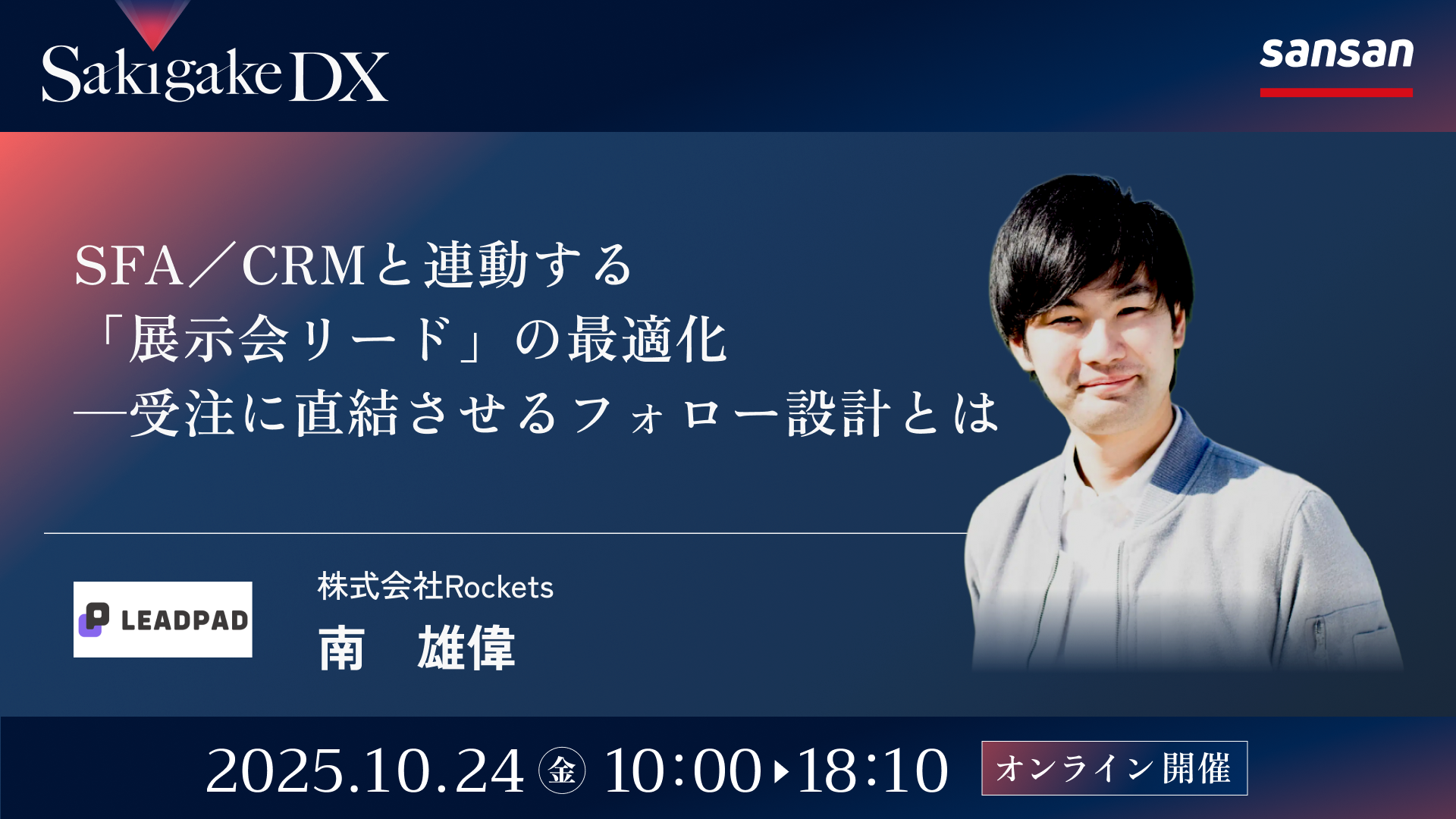 本セッションでは、160万社のデータを基に構築されたLeadpadを活用し、展示会リードを「受注確度の高い案件」に変えるためのシナリオ設計、アプローチの自動化、タイミング最適化の仕組みを具体的に解説します。